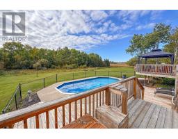 Escape to your own private 5.6-acre country retreat on the peaceful outskirts of Lavigne. This charming all-brick ranch-style bungalow offers the perfect blend of comfort, space, and natural beauty. Step into a bright and welcoming living room featuring vaulted ceilings and large windows that flood the home with natural light. The main level has been tastefully refreshed with new flooring, fresh paint, and updated bathrooms, giving the home a clean, modern feel. The open-concept kitchen and dining area create an ideal space for family living and entertaining, with garden doors leading to a spacious deck and gazebo - perfect for outdoor dining, relaxing, or enjoying the tranquil surroundings. The main floor features three comfortable bedrooms, including a generous primary suite complete with a private 3-piece ensuite. The full, partially finished basement adds valuable living space, offering a large recreation room with a cozy wood fireplace, a private office, and an expansive utility/workshop area with walkout access to the attached insulated double garage. Outside, enjoy summer days in the beautiful in-ground pool, surrounded by mature forest and open pastures. This exceptional property provides privacy, space, and the serenity of country living while still being close to local amenities. A true country oasis with room to relax, entertain, and enjoy nature. (id:47351)