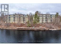 $1,163.41 MonthlyEnjoy relaxed waterfront living on the Muskoka River in this spacious 3-bedroom, 2-bathroom condo . A versatile open-concept layout in the main living spaces offers plenty of room to arrange and enjoy daily life. The primary bedroom features a 3-piece ensuite, two closets, and ample space for a king sized bed. A bright second bedroom plus a third bedroom or den is served by a 4pc guest bath. Step out to one of the building's rare walk-out terrace suites, offering direct access outdoors-ideal for pet owners or anyone who appreciates the added convenience. In-suite laundry and a reserved underground parking space add to the comfort. Residents can use the communal dock for riverside lounging or dining, and downtown Huntsville is just a short walk away. A wonderful choice for down-sizers or those seeking low-maintenance living close to town and the water. (id:47351)