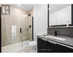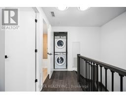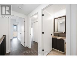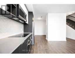 Experience elevated living in this beautifully designed 2-storey townhouse offering over 1,000 sq. ft. of sophisticated, thoughtfully curated space. The main level features a spacious enclosed den (9.7 ft x 7.6 ft) with a door for privacy, ideal as a third bedroom, executive home office, or private guest retreat.Designed for both comfort and functionality, the home offers two full bathrooms plus a stylish main-floor powder room. The modern kitchen is appointed with full-size appliances, sleek cabinetry, and ample prep space-perfect for everyday living and entertaining alike.Enjoy the rare convenience of dual access with a private street-facing front entrance and rear entry through the condominium building, allowing seamless access to premium amenities. The approximately 100 sq. ft. private front patio provides an intimate outdoor retreat, ideal for morning coffee or evening relaxation.Underground parking is included. Situated in a prime location with immediate access to transit and major highways, this residence blends urban convenience with upscale comfort.Residents enjoy an exceptional array of amenities including a state-of-the-art fitness centre, outdoor pool, landscaped patio with fire pit, concierge service, security, guest suites, party room, and a direct shuttle bus to the subway station.A rare opportunity to own a newer luxury townhouse in a highly sought-after community. The property will be professionally cleaned prior to closing, and noted deficiencies-including the den ceiling and flooring-will be fully repaired before closing. (id:47351)