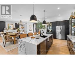 Welcome to 107 Louise Creek Crescent, a stunning 5-bedroom plus den, 5-bathroom bungalow perfectly situated on a quiet, tree-lined street in Elmwood. This custom residence showcases a captivating wood and Shouldice designer stone exterior, blending timeless elegance with modern design. Inside, you'll find wide plank hardwood floors, soaring 10 ft ceilings on the main level, and 8 ft doors that create a sense of space and luxury throughout. The open-concept kitchen, living, and dining area is ideal for both everyday living and entertaining, featuring top-of-the-line appliances and abundant natural light. Step outside to your own private treed oasis, where a covered back porch with a stone wall and double-sided fireplace creates the ultimate atmosphere for year-round enjoyment. The spacious primary suite offers a luxurious ensuite retreat complete with heated floors, while all additional bedrooms are generously sized to accommodate the whole family. An oversized heated 3-car garage with direct stairs to the lower level adds unmatched convenience and functionality. Conveniently located steps from Boyd Lake and scenic walking trails, with school bus route access, this home is the perfect blend of comfort, style, and practicality. (id:47351)