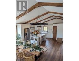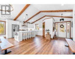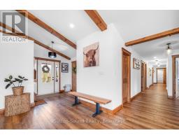 Welcome to your dream retreat on the stunning Bruce Peninsula. Tucked away on 5 private acres with scenic walking trails, this custom-built 2021 modern farmhouse blends rustic warmth with contemporary elegance. With 5 spacious bedrooms and 2.5 baths, the open-concept layout is bright and airy with vaulted ceilings and premium finishes throughout. The heart of the home is a beautifully crafted chefs dream kitchen featuring a huge 8 burner double oven propane gas range, Canadian-made cabinetry, a butler's pantry, and locally milled, live-edge wood shelving and bar....perfect for hosting or gathering with family. Throughout the home, handcrafted touches shine: local wood trim, beams, and solid doors, along with curated Canadian-made furnishings. The serene primary suite is a true retreat with a luxurious 4-piece ensuite, soaker tub, and walk-in closet. A spacious laundry/office combo with walkout leads to a large covered back deck and clothesline for practical country living. Step outside to enjoy raised garden beds, chicken coops, and peaceful views of your own private acreage.Quonset hut for parking or storage. Just minutes from Lake Hurons crystal-clear waters, with Whiskey Harbour and Pike Bay nearby for beach days and unforgettable sunsets. Conveniently located approx. 20 mins to Wiarton, 15 mins to Lions Head, and 45 mins to Tobermory, you'll enjoy both privacy and access.So whether you're seeking a full-time home, vacation getaway, or artisan retreat, this one-of-a-kind property offers comfort, character, and a deep connection to nature. (id:47351)