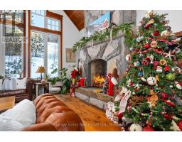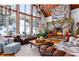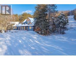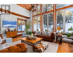 Meticulously planned, designed and crafted, this 7000+sqft home or recreational retreat is surrounded by more than 35 acres of unique landscapes and is just minutes to a beach and boat launch on Peninsula Lake. The sprawling residence was built to maintain efficiency with ICF construction and in-floor heating, as well, every element in this custom-build was carefully selected from only quality products. This home offers extensive modern comforts and fine finishes from high-end kitchen appliances, Emtek hardware, Perrin & Rowe faucets to the reclaimed hemlock floors, Toto toilets, & oversized fireplaces. Upon arrival, it's evident that the designer thoroughly considered the floor plan to provide the ultimate in function, convenience, and luxury. The main floor is flooded with natural light with floor-to-ceiling windows, offers a desirable open-concept layout and hosts the stunning primary bedroom. You will fall in love with the lavish primary suite featuring a 5pc ensuite with steam shower, heated floors and a soaker tub with panoramic views. The walk-in closet provides enough space for your attire, shoes & accessories. For your family or guests, the 2nd level offers a dedicated space for relaxation, with each of the three tastefully decorated bedrooms enhanced by ensuite privileges. The sizeable recreation room on the lower level is ideal for table games or hosting gatherings, and the separate guest wing is well suited for your guests with a private 3pc bath. For ease, the 3-car attached garage allows effortless entry to the home, and the finished space above creates a perfect in-law suite or a bonus space for growing families. Formerly known & operated as Tally Ho Winter Park, this incredible property has been cherished and holds fond memories for those who enjoyed spending winters here or learned to ski on the once-maintained hills. With so much outdoor space to enjoy, owners & guests are privy to a lifestyle of endless exploration and entertainment. (id:47351)