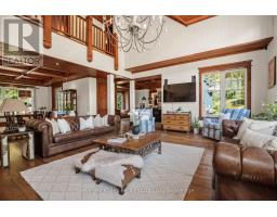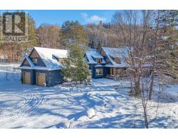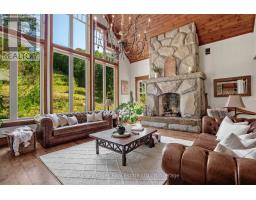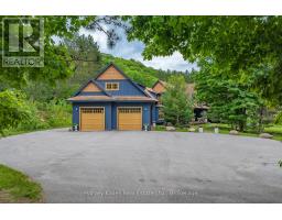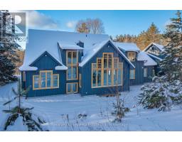 Incredible Value! Meticulously planned, designed and crafted, this 7000+sf home or recreational retreat is surrounded by more than 35 acres of unique landscapes and is just minutes to a beach and boat launch on Peninsula Lake. The sprawling residence was built to maintain efficiency with ICF construction and in-floor heating, as well, every element in this custom-build was carefully selected from only quality products. This home offers extensive modern comforts and fine finishes from high-end kitchen appliances, Emtek hardware, Perrin & Rowe faucets to the reclaimed hemlock floors, Toto toilets, & oversized fireplaces. Upon arrival, it's evident that the designer thoroughly considered the floor plan to provide the ultimate in function, convenience, and luxury. The main floor is flooded with natural light with floor-to-ceiling windows, offers a desirable open-concept layout and hosts the stunning primary bedroom. You will fall in love with the lavish primary suite featuring a 5pc ensuite with steam shower, heated floors and a soaker tub with panoramic views. The walk-in closet provides enough space for your attire, shoes & accessories. For your family or guests, the 2nd level offers a dedicated space for relaxation, with each of the three tastefully decorated bedrooms enhanced by ensuite privileges. The sizeable recreation room on the lower level is ideal for table games or hosting gatherings, and the separate guest wing is well suited for your guests with a private 3pc bath. For ease, the 3-car attached garage allows effortless entry to the home, and the finished space above creates a perfect in-law suite or a bonus space for growing families. Formerly known & operated as Tally Ho Winter Park, this incredible property has been cherished and holds fond memories for those who enjoyed spending winters here or learned to ski on the once-maintained hills. With so much outdoor space to enjoy, owners & guests are privy to a lifestyle of endless exploration and fun. (id:47351)