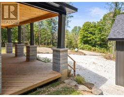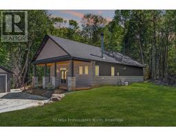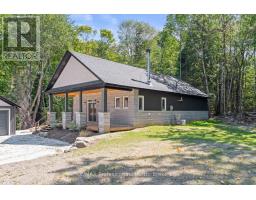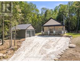 1076 Angel Road | Eagle Lake | 3 Bed | 2 Bath | 1.84 Acres Nestled in the heart of the Eagle Lake community, just minutes from Sir Sam's Ski Hill, this 1,645 sq ft bungalow offers the perfect balance of modern design & natural tranquility. Set on 1.84 wooded acres, this home is a private retreat surrounded by towering trees, fresh air, & four-season adventure right at your doorstep. From the moment you arrive, the clean lines & welcoming charm of the covered front porch invite you inside. With a pine ceiling, pot lights, & timber posts, this space sets the tone for warm evenings with friends or quiet mornings with coffee in hand. Step inside to soaring 10-foot ceilings & an open-concept layout that feels bright and spacious. The living room is anchored by a floor-to-ceiling stone fireplace, creating a cozy gathering space for snowy winter nights. The kitchen is a showpiece, featuring a waterfall island, custom lighting, & walkout access to the outdoors. Thoughtful details are found throughout sound insulation for quiet living, USB plugs, hallway nightlights for convenience, & central vac for easy living. This home includes 3 bedrooms & 2 full baths, each with modern finishes. The primary suite is a relaxing retreat, complete with a stylish ensuite & walk-in shower. Comfort is at the forefront with forced-air propane heating, central air, drilled well, & septic system. Outside, you'll love the detached 2-car garage for storing vehicles & toys, plus a backyard fire pit area, the perfect spot for making memories under the stars. Trails wind through your very own forested property, giving you privacy & connection to nature while still being close to amenities. Whether you're looking for a full-time residence or a weekend getaway, this property checks every box: space, style, & setting. 1076 Angel Road, Eagle Lake, modern country living in the Haliburton Highlands. *Some images have been virtually staged/altered/rendered* Taxes Not Yet Assessed* (id:47351)