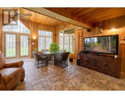 For more info on this property, please click the Brochure button. Welcome to 1078 Berlett's Road - a truly one-of-a-kind property. This custom two-storey raised bungalow, built in 1967, offers 3,028 sq. ft. of beautifully renovated living space across two levels. With only two owners in its lifetime, it's easy to understand why once you arrive. The 3 + 1 bedroom, 2 bathroom layout charms immediately, set on 6.3 acres of wooded property just minutes from city conveniences. Located only 5 minutes from Costco and the Waterloo Boardwalk, yet steps from Schneider's Bush Conservation Area, you'll enjoy nature walks, bird watching, and cross-country skiing right at your doorstep. Inside, the home features a custom Acorn kitchen with granite countertops, hardwood flooring, and river-rock accents throughout. The inviting living room boasts 9' ceilings, double skylights, and built-in cabinetry framing a rustic lodge-style river-rock fireplace-an instant showpiece. Outdoor living is equally impressive, with two concrete patios (one covered, one open for fires) and two raised decks with glass railings, offering space to entertain, work, and relax. A highlight of the property is the 1,316 sq. ft. two-storey finished detached garage, built in 2013. With 11' ceilings, two overhead doors, heated floor, a wood stove, pellet stove, kitchen cabinetry, and a full home theatre, it's a dream workspace and retreat. Ascend the custom staircase - crafted from wood harvested directly from the property - to a spectacular games room complete with a fireplace and custom-built bar. Outfitted with a 12-foot projection screen, Bose surround sound, fridge, and stove, this cozy hideaway makes the perfect dog house or entertainment hub for any occasion. (id:47351)