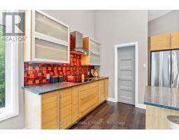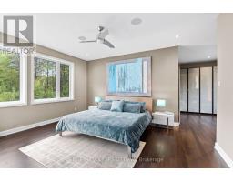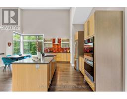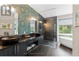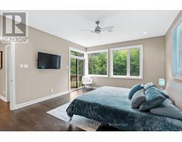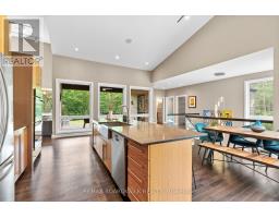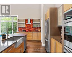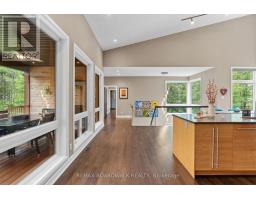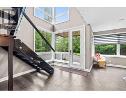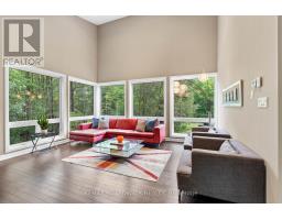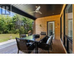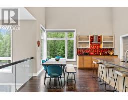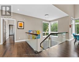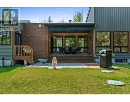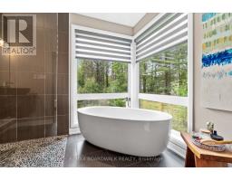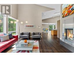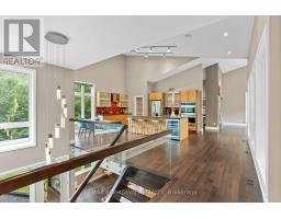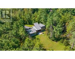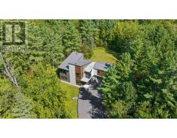 Welcome to Saddlebrook Estates, where modern sophistication meets rural tranquility in this award-winning residence designed by Brian Saumure and built by Maple Leaf Custom Homes. Nestled on a private, treed 3.33-acre lot backing onto more than 500 acres of Crown land with resident-maintained hiking, snowshoeing, and cross-country ski trails, this property offers guaranteed unobstructed views and exceptional privacy.This reverse-concept home features 2,775 sq ft of refined living space (1,650 sq ft on the main level and 1,125 sq ft on the lower level), plus a 175 sq ft three-walled covered outdoor entertaining area. Radiant in-floor heating warms the lower level, while an architectural steel-and-glass staircase and abundant interior and exterior lighting create an open, airy ambiance.The great room, anchored by a Napoleon fireplace with built-in speakers, flows seamlessly into the chef's kitchen complete with professional appliances, a walk-in pantry, electronic push-button cabinetry, a dining area, and a powder room roughed-in for a future bath or shower. Designed for convenient living, the primary suite is located on the main living level and features a dressing area and spa-style ensuite. A bright office on the main level opens to a private balcony and yard walkout.The lower level includes a media room, three additional bedrooms, a full bath, mudroom, storage or gym area, mechanical room, and direct access to the full two-car garage.Built for both style and durability, the exterior combines cedar accents, concrete board siding, and metal cladding. Tucked at the end of a quiet cul-de-sac just minutes from Carp Village and central Kanata, this is a rare opportunity to enjoy upscale, efficient living surrounded by nature. (id:47351)