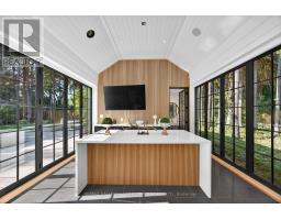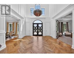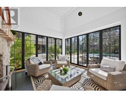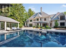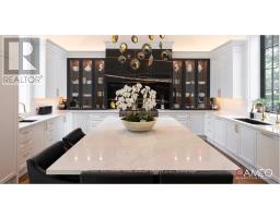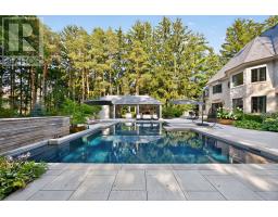An Iconic Estate on Prestigious Kennedy Street West. Set on 1.18 private acres in the heart of Old Aurora, this one-of-a-kind residence embodies refined elegance and modern glamour. Behind its timeless façade, interiors are curated with a designers eye, wide-plank custom elm hardwoods, exquisite chandeliers, and architectural ceiling heights that flood the home with natural light. At the centre, the show-stopping Cameo Kitchen blends luxury and function with bespoke cabinetry, professional-grade appliances, and statement finishes worthy of a magazine spread. Formal and casual spaces alike are anchored by multiple fireplaces, creating warmth and sophistication throughout. The upper level boasts four bedrooms, highlighted by a lavish primary suite with a custom walk-in dressing room and spa-inspired ensuite retreat. On the lower level, two additional bedrooms, a dramatic stone fireplace, a wet bar designed as a secondary kitchen, and a private gym extend the homes lifestyle experience. Outdoors, the grounds transform into a resort-worthy escape: a glistening pool framed by multiple terraces, a designer outdoor kitchen, a custom designed cabana with retractable doors for seamless indoor-outdoor entertaining, floor to ceiling stone fireplace, 2 pc ensuite, wet bar and a stand-alone sauna that elevates relaxation to art form. A four-car garage with handcrafted wood doors, lead in to from a custom mudroom with walnut floor to ceiling cabinetry, completes this rare offering. This is more than a home, it is a statement of prestige, privacy, and unparalleled design in one of Auroras most coveted enclaves. (id:47351)