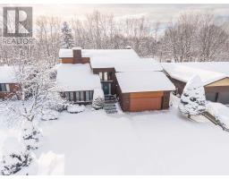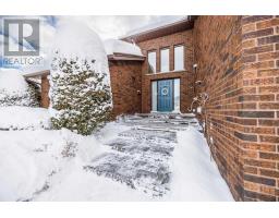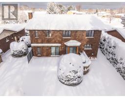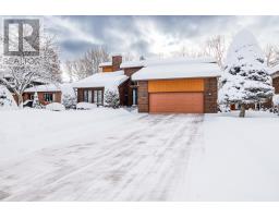 This unique and architecturally striking home is situated in an exclusive pocket of homes with direct access to the Sault Ste. Marie Golf Club. Offers 4 seasons of activity with groomed trails all winter! Spacious family home with over 3000 square feet of living space with 4 bdrms and 4 baths. This home has personality, charm and incredible craftmanship with solid wood doors and trims throughout. Make a grand first impression with the gracious foyer with soaring ceilings and open, curved staircase. Sunken formal living room is expansive and bright with a wall of windows, hardwood floors and a striking double-sided wood fireplace with formal dining room on other side. The kitchen, eat in area, and family room stretch across the back of home, all overlooking the private backyard with perennial gardens and golf course just beyond. Fully renovated Island Enterprise kitchen is a standout with cork flooring, timeless flat panel cabinetry, Sub Zero fridge, convection stovetop, double built in oven, granite countertops and a versatile island for casual meals and gathering. Sunken family room has backyard access, southern exposure and cozy gas fireplace. Main floor also features laundry, mudroom entrance, and 2 pce bath. Second floor features 4 full bedrooms, with an impressive primary suite with a massive walk in closet that goes on forever and ensuite. Lower level offers multiple spaces including a sauna with bathroom and shower, pool table room, office space, cantina and an unfinished area currently used as a workout room. There is plenty of square footage to create an incredible future recreation room. FEATURES: sealed interlocking brick driveway (no weeds!), CANEX siding and brick exterior (no maintenance!), metal shingled roof (2018), awning on back deck with new privacy fence, central vacuum, sprinkler system and 400 amp service. (id:47351)