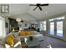 Known as the sunshine chalet and the house with the best views in all of Castle Glen! Immerse yourself in the stunning, panoramic views of Osler Bluffs, Niagara Escarpment and Georgian Bay from this one-of-a-kind bungalow. The wrap-around 75-ft deck with glass panels provides unobstructed sights. Every window in this home has a breathtaking look of natural beauty from season to season. Castle Glen is a one-of-a-kind community that sits amidst an outdoor enthusiast's heaven, surrounded by scenic hiking trails with cascading rivers, the Bruce Trail, 3-Stage mountain biking trails, cyclists' routes, snowshoeing and cross-country ski trails. The location of this home offers the perfect balance of nature and convenience with downtown Collingwood and Blue Mountain Village just 10 minutes away. This four bed, 3 bath open-concept home is truly an entertainer's delight throughout and has too many features to include! Main level has a chef's kitchen w/ high-end appliances, dining room designed for gathering, great room anchored by a wood-burning fireplace and vaulted ceilings, master suite in separate wing from guest suite, mudroom and laundry w/ access to a large two-car, insulated garage w/ storage loft for all your outdoor gear. The lower-level walk-out is a man-cave dream w/ a bar to rival any fine pub. Enjoy the wet sauna and hot tub. Even the walk-out level guest bedrooms have a view! This remarkable home has been meticulously cared for and must be seen! (id:47351)