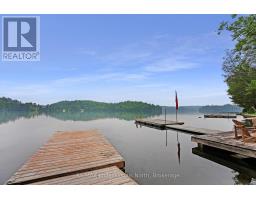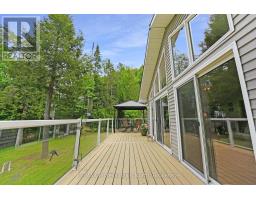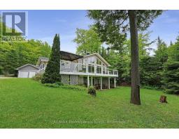 St. Nora Lake awaits. This lovely year-round cottage or home has room for all the family. There is a Cathedral ceiling in the living/dining room to let loads of sunlight in and the floor to ceiling windows provide the perfect waterfront view. The cottage has a fully finished walkout basement with a kitchenette in the lower level for your family/guests. Relax in the sunroom for bug-free enjoyment or sit on the expansive deck to catch the lake breeze. The waterfront is perfect for swimming and drops off quickly at the end of the dock for deep water. Two docks give ample room for all the water toys. More bonuses? A 2-car detached garage and a one-bedroom Guest Bunkie. Discover the Algonquin Highlands Water Trails system - popular with canoers and kayakers, and the great hiking, skiing, and snowshoe trails directly across the waterfront. (id:47351)