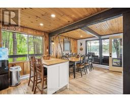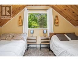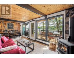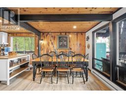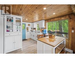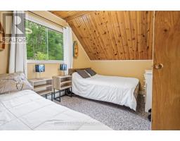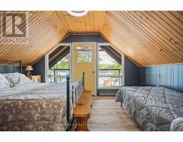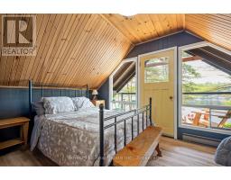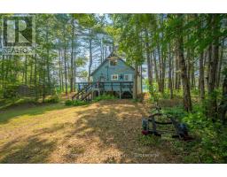 Welcome to Little Gull Lake, a rare and peaceful retreat surrounded by nature. This spring-fed lake is home to just 28 lots, with 3 being Crown Land, and is embraced by the Queen Elizabeth II Wildland Provincial Park. Known for excellent fishing, swimming, and motorized watersports, Little Gull is a hidden gem for those seeking privacy and natural beauty. Set on an acre lot with 166 feet of shoreline, this 3-bedroom, 1-bath cottage offers a perfect balance of comfort and seclusion. Since 2022, the current owners have thoughtfully updated the property with fresh interior and exterior paint, new flooring, stylish light fixtures, modern doors, and an upgraded balcony with sleek glass railing, all enhancing both style and function. Inside, the main floor features a cozy living area with a woodstove and a walkout to a spacious, partial wraparound deck where you'll spend countless hours enjoying serene lake views. A main floor bedroom with Murphy bed adds flexibility. Upstairs you'll find two generous bedrooms. The lakeside bedroom has access to the balcony overlooking the water; a picture-perfect morning coffee spot. The shoreline offers a mix of natural and deep water off the dock for diving in on hot summer days. The gently sloping driveway leads to a level lot, making access easy and convenient for family and guests alike. Located just 15 minutes from Minden or 15 minutes to Norland, this property combines the tranquility of cottage living with the convenience of nearby amenities.1099 Bracken Trail is more than a cottage, its a private escape where peace, privacy, and natural beauty come together. (id:47351)