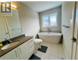 Welcome to this beautifully newly built semi-detached 2-storey home, thoughtfully crafted by the reputable Spallaci Home Builders. Nestled in the highly sought-after, upscale, & family-friendly West Hamilton Mountain neighbourhood, this home offers the perfect combination of modern design, everyday comfort, & exceptional convenience. From the moment you arrive, the inviting brick & stone exterior & charming covered porch create a warm & welcoming first impression. Step inside to discover a bright, open living space enhanced by 9-foot ceilings & large windows that fill the main floor with natural light, creating an uplifting & spacious atmosphere. The heart of the home is the stunning kitchen, featuring quartz countertops, sleek overhead cabinets & drawers, & a seamless walk-out to the rear deck—ideal for outdoor dining, entertaining, or simply enjoying a quiet moment outside. The modern open-concept layout makes hosting & everyday living feel effortless, with a smooth flow from kitchen to dining to living areas. Upstairs, the home continues to impress with a well-designed second floor that offers comfort & privacy for the whole family. The main bedroom serves as a peaceful retreat, complete with a private ensuite bath & a walk-in closet. Two additional bedrooms provide flexibility for children, guests, or office space—one of which includes its own walk-in closet for added convenience. The separate second-floor laundry room is a thoughtful & practical touch that simplifies daily routines. The partially finished basement, complete with a 3-piece bath, offers excellent potential for additional living space—whether you envision a cozy family room, home gym, hobby area, or guest suite. Perfectly located minutes from the Garth & Upper James shopping areas, & a short distance to nearby parks & schools, this home delivers style, comfort, & convenience in one exceptional package. A wonderful opportunity to enjoy modern living in a fantastic neighbourhood—welcome home! (id:47351)