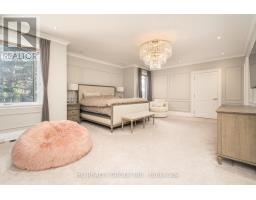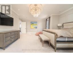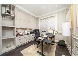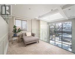 Exceptional custom-built 4+1 bedroom, 6-bath residence on a quiet, tree-lined street in prestigious York Mills. Soaring 10' ceilings on the main floor and 9' ceilings on the second and lower levels create a bright, open feel, highlighted by dramatic two-storey (20') full-height glass windows overlooking a private backyard with automated shades. The grand family room features a two-storey bookmatched slab fireplace, coffered ceiling, and skylight, while the chef's kitchen boasts high-end appliances, oversized island, and custom cabinetry. Elegant marble and natural stone finishes, refined mouldings, and built-in millwork elevate every space. The primary suite offers a spa-inspired ensuite and generous walk-in closets. Beautiful professionally landscaped grounds complete the home's private oasis. Located within the highly sought-after Denlow School district and close to top private schools including Crescent School, The Toronto French School, and Havergal College, this home combines luxury, style, and exceptional location. (id:47351)