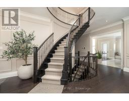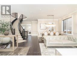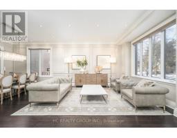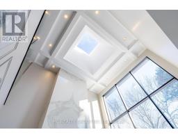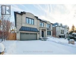 Exceptional custom-built 4+1 bedroom, 6-bath residence on a quiet, tree-lined street in prestigious York Mills. Soaring 10' ceilings on the main floor and 9' ceilings on the second and lower levels create a bright, open feel, highlighted by dramatic two-storey (20') full-height glass windows overlooking a private backyard with automated shades. The grand family room features a two-storey bookmatched slab fireplace, coffered ceiling, and skylight, while the chef's kitchen boasts high-end appliances, oversized island, and custom cabinetry. Elegant marble and natural stone finishes, refined mouldings, and built-in millwork elevate every space. The primary suite offers a spa-inspired ensuite and generous walk-in closets. Beautiful professionally landscaped grounds complete the home's private oasis. Located within the highly sought-after Denlow School district and close to top private schools including Crescent School, The Toronto French School, and Havergal College, this home combines luxury, style, and exceptional location. (id:47351)