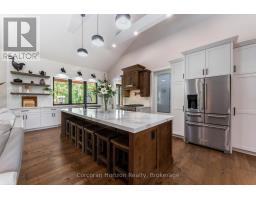 Your dream countryside retreat awaits. Minutes from everyday conveniences, this custom-built modern farmhouse bungalow offers a rare blend of luxury comfort and natural beauty. Set on nearly 6 private acres with breathtaking panoramic views of the Grand River and direct access to the Grand Valley Trail System, this exceptional 2023 built home is thoughtfully designed for multi-generational living, income potential and elevated everyday living. With over 6,000 sqft of beautifully finished space the home features 7 bedrooms 6.5 bathrooms 3 kitchens and 3 laundry areas, ideal for large or blended families. The main level offers two distinct living quarters with 4 bedrooms, 4.5 baths, 2 kitchens, and 2 laundry areas, providing exceptional flexibility for both entertaining and comfortable daily living. The impressive Great Room showcases soaring 16' vaulted ceilings, while 10' ceilings in the dining area and 9' ceilings in the bedrooms create a bright, airy atmosphere throughout. The chef-inspired kitchen anchors the home with a dramatic 10'island, walk-in pantry, and custom cabinetry, perfect for hosting and gathering. Each principal bedroom includes a walk-in closet and private ensuite. The primary retreat offers spa-inspired finishes, serene countryside views, and direct access to the expansive deck. A fully self-contained in-law suite on the main floor includes its own kitchen, living room, bedroom, and 4-piece bath, ideal for extended family or guests. The lower level features a separate entrance to a bright 1-bedroom plus den suite with its own kitchen, bathroom and laundry, along with additional bedrooms a spacious recreation area with wet bar and ample storage. A private 490' driveway leads to this exceptional property, complete with a tiered covered porch with Douglas Fir beams, fully fenced LED lit sports court, and a heated 3 car garage. A rare offering combining privacy, versatility, and refined country living! Just minutes to shops, schools, and amenities. (id:47351)