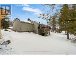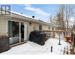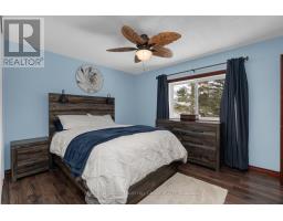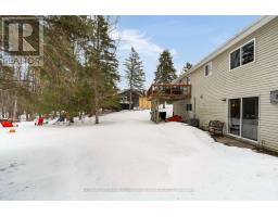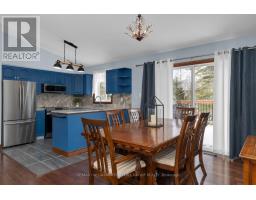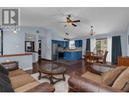 WALKOUT BUNGALOW IN THE SOUGHT-AFTER SUGARBUSH NEIGHBOURHOOD WITH A FOUR-SEASON LIFESTYLE RIGHT OUTSIDE YOUR DOOR! Living in Sugarbush means your morning routine includes the trailheads of Copeland Forest, local golf, and the ski runs of Horseshoe Valley, all while Barrie and Orillia sit just 20 minutes away. This bungalow stands out on its 227-foot corner frontage, framed by mature trees and a covered porch that's practically begging for a couple of Muskoka chairs. The open-concept main level opens up beautifully with vaulted ceilings, natural light, and hardwood floors through the living and dining areas. The kitchen makes a bold statement with vibrant blue cabinetry, granite counters, stainless steel appliances, and a stylish industrial light fixture, while the adjacent dining area walks out to a raised deck overlooking the backyard and bordering trees. Solid oak doors and trim bring a sense of craftsmanship to the interior, while the primary bedroom includes a double closet and semi-ensuite access to the main 3-piece bathroom. The finished walkout basement extends the living space with a large rec room centred around a gas fireplace, a full bathroom, a large storage area, and a separate bonus space suited to a den, office, or home gym. With an attached 2-car garage and driveway parking for 4 or more vehicles, this is exactly where a quieter pace of life and four-season adventure finally come together. (id:47351)