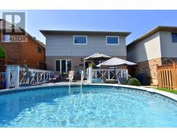 Original owner home in the sought-after Allison neighbourhood, meticulously maintained and upgraded in recent years. The curb appeal features tasteful landscaping, spotless concrete driveway and walkways that lead to the porch or the rear yard oasis with a concrete patio, low maintenance composite deck and the refreshing pool. The perfect recipe for summer entertaining! The heart of the home is the custom chef's kitchen, completely reconfigured with white cabinetry, granite counters and high-end stainless-steel appliances: Frigidaire Professional double wall ovens and refrigerator, Electrolux 5 burner gas cooktop. Loads of storage thanks to the pantry with pull-out drawers, corner cabinets with lazy susans, pots and pans drawers and a lighted display cabinet. The living and dining rooms both feature hardwood floors and crown moldings while the handy powder room completes the main floor. The wood staircase with painted spindles leads to the bedroom level where the primary suite offers his and hers closets and a renovated ensuite: new vanity with a quartz counter and a glass shower with a rainfall showerhead. The two spacious secondary bedrooms share the 4 piece main bath. The lower level consists of a large rec room with gas fireplace, perfect for entertaining or quiet family evenings. The workshop, laundry/utility room and large cold room offer ample storage or workspace. Updates include the kitchen & furnace 2010, roof shingles 2012, pool & deck 2021 (pool liner 2025), windows (except dining room) and doors 2021-22 , fridge & cooktop 2022-23, concrete driveway 2023, eavestrough leaf guard 2023, ensuite bathroom 2024. Extras include upgraded light fixtures, pot lights, brushed nickel door hardware, window blinds and a large shed. All this in arguable the most convenient Mountain location: steps to parks, library, YMCA and transit, easy drive to Limeridge Mall & Upper James shopping/eateries. This move-in ready home awaits you! (id:47351)