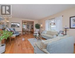 Welcome to this stunning two-storey brick home in the prestigious Purple Hill community, set on a beautifully landscaped -acre lot surrounded by mature trees and abundant birdlife. Enjoy a peaceful backyard oasis with a large ornamental pond and serene views from your kitchen, family room, and dining area-your own private retreat just minutes from town. Ideally located near Island Lake Conservation Area and Purple Hill Park, perfect for walking, nature, and outdoor living. Offering 4+1 bedrooms and 4 bathrooms, this home is designed for families and entertaining. The grand front entrance with elegant staircase leads to spacious wrap-around living and dining rooms, ideal for hosting large gatherings. A versatile main floor office can also serve as a bedroom. The updated eat-in kitchen features ample cabinetry, large pot drawers, countertop range, built-in oven, and pantry, flowing into a cozy family room with walkout to a wraparound two-tier deck.Upstairs offers four generous bedrooms, including a primary suite with spa-like ensuite, heated floors, jetted soaker tub, and walk-in shower. The fully finished basement adds an additional bedroom, 3-piece bath, and two large games rooms-perfect for family fun.Complete with a double-car garage, main floor laundry, and parking for six vehicles. A rare opportunity to enjoy space, privacy, and a true lifestyle property in a sought-after neighbourhood. Updates: kitchen (18), ensuite (18), shingles (15), furnace(13), AC(13) windows(11), well pump(24) (id:47351)