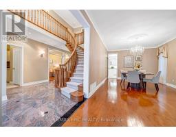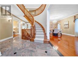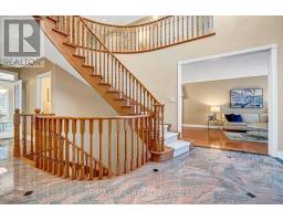Exceptional opportunity in a prime Richmond Hill location! Nestled on a quiet cul-de-sac, this executive home offers approximately 3,600 sq. ft. of elegant living space, featuring 9 ft ceilings on the main floor and a large skylight that fills the home with natural light. A stunning oversized skylight above the circular oak staircase enhances the home's grandeur, leading to a dramatic 2-storey open-to-above foyer with a Maria Teresa Austrian crystal chandelier and impressive double-door entry.The main floor features maple solid hardwood flooring throughout the family room, library, living, and dining areas. The upgraded kitchen is equipped with premium cabinetry, granite countertops, and a gas cooktop, and offers a walk-out to a composite deck complete with aluminum railings and tempered glass panels, along with split-level staircases leading to the beautifully landscaped ravine-view backyard-perfect for relaxing or entertaining.This well-maintained home is in excellent condition and includes all existing window coverings and hardware. The fully finished walk-out basement offers approximately 8'9" ceiling height and provides excellent additional living space, featuring a wet bar with cabinetry and upgraded marble flooring and countertops, a nanny suite with a 3-piece bathroom, and a spacious open area ideal for entertaining or exercise.Additional upgrades include modern railing spindles and vinyl casement windows throughout. The property is fully landscaped in both the front and backyard, featuring beautiful Japanese maple and magnolia trees, along with a lawn sprinkler system for easy maintenance.Ideally located just minutes to Highways 404 & 407, top-rated schools, parks, shopping, restaurants, and public transit. Close to the future T&T Supermarket. Situated in a highly sought-after neighbourhood known for its strong community atmosphere and excellent property values. A fantastic opportunity for families or investors seeking long-term potential. (id:47351)