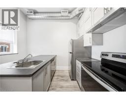 Welcome to 11 Queen Street — a bright, loft-style 1-bedroom, 1-bathroom residence in the heart of downtown Brantford. Located in a fully restored and secure building (completed in 2019), this renovated unit offers modern living with character and style. The open-concept layout is thoughtfully designed to maximize space and natural light, featuring oversized windows, high ceilings, and carpet-free, easy-care laminate flooring throughout. Tasteful upgrades include a sleek, modern bathroom and a practical kitchen equipped with stainless steel appliances, including a fridge, stove, and dishwasher. In-suite laundry adds everyday convenience. The building offers enhanced security with a 24-hour camera system and is ideally situated just steps from the Grand River, parks, trails, restaurants, shopping, and entertainment. Wilfrid Laurier University and Conestoga College are within walking distance, making this an excellent option for students or professionals. Public transit, VIA Rail, GO Bus service, and quick highway access are all nearby. Water and heat included; tenant pays hydro, internet, and tenant insurance. Street parking or nearby city lot parking available (id:47351)
