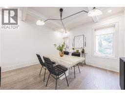 Welcome to 110 Kensington Avenue South! Set in the heart of the desirable Delta neighbourhood, this beautifully renovated home blends 1920s character with modern comfort. Just steps from Gage Park and a short walk to the shops and cafés of trendy Ottawa Street, this property offers the perfect mix of charm, convenience, and community. Curb appeal shines with an inviting front porch, beautifully framed with exterior lighting. Inside, bright open-concept living features stunning engineered hardwood flooring, fresh paint, crown moulding, baseboards, and elegant trim. The dining room highlights a sophisticated coffered ceiling with a statement light fixture—ideal for entertaining. The kitchen impresses with white cabinetry, pantry, quartz countertops, stainless steel appliances, double sink, and modern backsplash, with a walkout to a private, fenced backyard complete with a patio—perfect for relaxing or hosting. Additional updates include newer windows and exterior doors, newer shingles, upgraded electrical and plumbing fixtures. Located in a family-friendly neighbourhood surrounded by mature trees, trails, parks, schools, and transit, this home offers classic charm, thoughtful upgrades, and easy access to the best of Hamilton living. Come see for yourself. (id:47351)