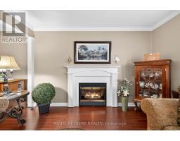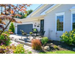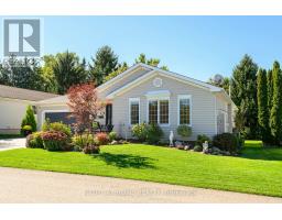 Welcome to the Gem of Antrim Glen! This exquisitely finished bungalow with a double car garage is set on a desirable private lot backing onto tranquil green-space. Impeccably maintained & tastefully updated, the home offers 3,100 sq. ft. of total living space. The main level showcases a grand living room with gas fireplace, flowing effortlessly into the dining area, an ideal setting for hosting friends & family. The chef inspired kitchen is a true highlight, featuring custom cherrywood cabinetry, leather-finish granite counters, a solar light, breakfast nook, & professional-series stainless steel appliances, including a built-in induction cooktop & wall oven with microwave. The kitchen opens to a spacious family room filled with natural light & providing a walk-out to the spectacular yard. Two generous bedrooms & two full bathrooms complete the main floor, including a primary retreat with a spa-like walk-in jetted soaker tub & integrated sound system. The fully finished lower level continues to impress, offering an additional bedroom, home office, fitness area, expansive rec room with electric fireplace, bathroom with a shower, workshop, & abundant storage. The exterior of the property is exceptional with custom stone double driveway, front & rear stone patios, professionally landscaped gardens, wireless in-ground sprinkler system, & serene views of mature trees. Additional features include hardwood, main-floor laundry, insulated double garage with inside entry, brand-new furnace & A/C, leaf-filter eaves, central vac, water filtration system, & water softener. A complete list of updates & upgrades is available. Antrim Glen provides a vibrant lifestyle community with a wide range of amenities, including heated saltwater pool, sauna, BBQ area, residents' lounge & kitchen for large gatherings, billiards, shuffleboard, library, craft room, horseshoes, vegetable garden plots, & scenic walking trails. Move in ready, simply unpack & enjoy! Monthly Land Lease: $1210.16. (id:47351)