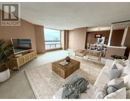 Clean & updated two-bedroom condo offering 1,350 sq. ft. of bright & spacious living. The inviting foyer opens into a generous living room with access to a private balcony, where you can enjoy stunning north-facing city and lake views. As a corner unit, the rooms harness the natural light. Also note that all windows have stylish California shutters. The beautiful eat-in kitchen features ample cabinetry, a double sink, and a time-saving dishwasher, making it both functional and inviting. A separate dining room offers the perfect space for formal gatherings. Down the hall, you'll find an impressive amount of storage space behind the row of mirrored closets. The private primary bedroom suite includes direct balcony access, a walk-in closet, and a four piece ensuite bathroom. The second bedroom, additional four-piece bathroom, and the convenience of in-suite laundry complete this exceptional unit. Included is one secure underground parking space, conveniently located close to the entry door, as well as a secure storage locker for added convenience. Building amenities include a spacious penthouse-level lounge, sauna, and exercise room on the P1 level. This well-regarded and highly sought-after building is ideally located close to a wide range of amenities, making it an excellent place to call home. (id:47351)