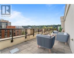 Discover upscale urban luxury in this exceptional penthouse at City Square residences. Flooded with natural light from floor-to-ceiling windows and warmed by maple hardwood floors, the open-concept kitchen features stainless steel appliances and in-suite laundry. The primary suite offers a custom walk-in closet, while your private 450 sq ft terrace accessible from the living area and bedroom boasts panoramic city skyline views, perfect for entertaining. Enjoy geothermal heating and cooling for year-round comfort. In the heart of vibrant Durand, walk to shops, restaurants, parks, hospitals, and GO Transit. Amenities include two gyms, media room, hospitality space, and bike storageplus two prime parking spots included in the lease. (id:47351)