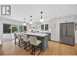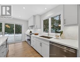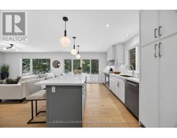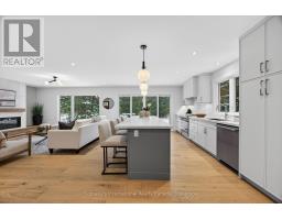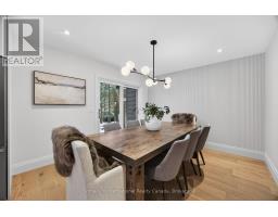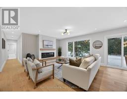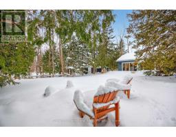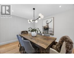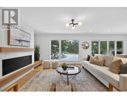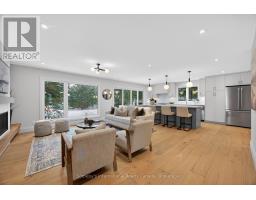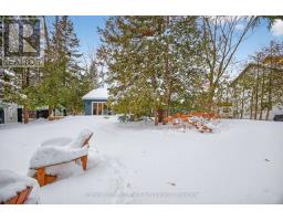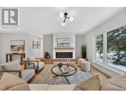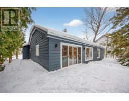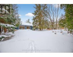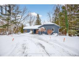 Welcome to this spectacular bungalow, professionally renovated throughout and set on a premium 1/3-acre treed lot at the base of Blue Mountain. Perfect as a full-time residence or a weekend retreat/ski chalet, this home blends style, comfort, and thoughtful design. A circular driveway leads you to a single-car garage with automatic door opener and there is ample parking for three or more vehicles. The covered front porch features a new deck and stunning new fiberglass front door. Step inside to a welcoming front hall with access to an expansive laundry room with custom storage, a laundry sink, and quartz countertops.The main floor has been completely redesigned with entertaining in mind, offering a beautiful open-concept layout and two separate decks-one off the dining area and one off the kitchen. The stunning kitchen features all-new custom cabinetry, quartz countertops, a spacious breakfast bar, and new stainless steel appliances. The living room is anchored by a 56" Continental gas fireplace with floor-to-ceiling tile surround and feature wall. Throughout the main level you'll find engineered hardwood floors, all new doors and trim, and updated recessed lighting and light fixtures. Two guest bedrooms, both with new custom closets, share a stylish 4-piece bathroom with heated floors. The primary bedroom offers a walk-in closet and a custom 3-piece ensuite with walk-in shower and heated floors. Both bathrooms are finished with quartz countertops and large-format porcelain tile. Additional upgrades include all new vinyl windows and doors, owned Navien on-demand hot water system, Ecobee thermostat, and upgraded blown-in attic insulation. (id:47351)