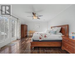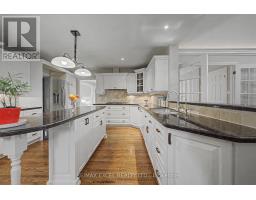 Tucked away on a quiet cul-de-sac and backing onto a picturesque ravine, this beautifully updated 3+1 bedroom bungalow offers exceptional space, privacy, and versatility. A bright front foyer welcomes you into the home, leading to a modern eat-in kitchen with granite countertops, built-in appliances, and abundant cabinetry, seamlessly open to the impressive great room featuring soaring 18-ft ceilings, custom built-ins, gas fireplace, wet bar, and a stunning oversized bow window overlooking the treed setting.The main level features three generous bedrooms, highlighted by a luxurious primary suite with a two-sided fireplace and spa-inspired 6-piece ensuite complete with heated floors, double vanity, soaker tub, steam shower, and spacious dressing area with custom closets.The fully finished walk-out basement adds incredible flexibility, offering a private nanny/in-law suite with kitchen, laundry, separate entrance, and 3-piece bath. Additional spaces include a large recreation room with gas fireplace, exercise room or office with walk-out to patio, bonus room, and powder room.Set on a stunning ravine lot surrounded by mature trees, multiple walk-outs lead to expansive decks and outdoor spaces-perfect for relaxing or entertaining in complete privacy. (id:47351)