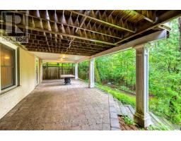 Tucked away on a quiet cul-de-sac and backing onto a picturesque ravine, this beautifully updated 3+1 bedroom bungalow offers exceptional space, privacy, and versatility. A bright front foyer welcomes you into the home, leading to a modern eat-in kitchen with granite countertops, built-in appliances, and abundant cabinetry, seamlessly open to the impressive great room featuring soaring 18-ft ceilings, custom built-ins, gas fireplace, wet bar, and a stunning oversized bow window overlooking the treed setting.The main level features three generous bedrooms, highlighted by a luxurious primary suite with a two-sided fireplace and spa-inspired 6-piece ensuite complete with heated floors, double vanity, soaker tub, steam shower, and spacious dressing area with custom closets.The fully finished walk-out basement adds incredible flexibility, offering a private nanny/in-law suite with kitchen, laundry, separate entrance, and 3-piece bath. Additional spaces include a large recreation room with gas fireplace, exercise room or office with walk-out to patio, bonus room, and powder room.Set on a stunning ravine lot surrounded by mature trees, multiple walk-outs lead to expansive decks and outdoor spaces-perfect for relaxing or entertaining in complete privacy. (id:47351)
