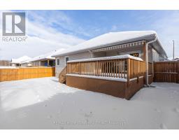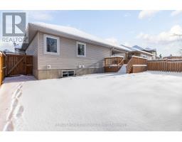 This 3-bedroom, 2-full-bathroom home is designed with comfort and accessibility in mind. It features a covered deck off the dining room, a fully fenced backyard, and an attached double garage with an extra two feet added to accommodate a wheelchair ramp, making the home wheelchair and walker friendly. A spacious entrance welcomes you into the foyer, with a versatile room to the left that works well as a guest room, den, or home office. The open-concept main living area is ideal for entertaining, offering a living room with a gas fireplace, a well-equipped kitchen with an island for extra counter space and storage, and a dining area with patio doors leading to a partially covered deck (approx. 8 ft X 18 ft). For added comfort, the deck also includes an automated awning for extra shade. The private backyard is fully fenced, perfect for grandchildren or pets. Down the hall, you'll find a convenient laundry room with closets and cupboards and direct access to the garage, so no more shoveling snow or getting caught in the rain. This level also includes a second bedroom, a four-piece bathroom for guests, and a primary bedroom with a walk-through closet leading to a private three-piece ensuite. The lower level is a blank canvas, ready for your ideas. Use it for storage or finish it to add one or two additional bedrooms, a family room, and a third bathroom (already roughed in). The possibilities are endless. A must-see home with space, function, and flexibility. Gas (Enbridge) is 1245.32, Hydro One 1287.13 The front room has been virtually staged as a guest bedroom and office. (id:47351)