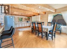 Embrace this impressive Confederation Log Home tucked away in a private retreat offering approximately 500 ft of canal waterfront and sitting on an impressive 2-acre lot. Inside this unique home, you’re met with an exceptional layout featuring a large great room with cathedral ceilings and an open balcony overlooking the space below. You’ll notice the rich wood tones, exposed beams, and detailed joinery showcasing the expert craftsmanship throughout. The massive eat-in kitchen provides plenty of room for large gatherings, dinners, and entertaining, with patio door access to the outdoor area where you can relax and take in beautiful canal views, wildlife and breathtaking sunsets! Enjoy the convenience of main floor living with a spacious primary bedroom offering a roughed-in ensuite with a walk-in closet area. A large foyer, a 2pc bath and laundry room complete the main floor. Upstairs, you’ll find two generous bedrooms and a 4pc bathroom. Outside, there’s room to roam across three parcels of land with a new wood and steel dock! This place really sets the tone for relaxation and enjoying life on the water. With access to Rondeau Bay, you can swim, boat, and fish in world-class waters right from your backyard. The heated oversized double detached garage/shop provides ample space for all your toys, a workshop, or future projects while you enjoy this peaceful and private setting. Services include municipal water, natural gas, septic and well water for your gardening or other uses! This property is truly one-of-a-kind!! Don’t miss your chance to make it yours. Call today for more information or to schedule your private viewing! (id:47351)
