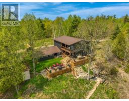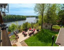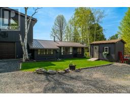 Discover your own serene oasis on the stunning shores of Bull Lake with this exceptional 2,363 sq. ft. waterfront recreational property. Nestled on a private lot with 100 feet of south-facing waterfront, this retreat invites you to embrace lakeside summers filled with swimming, boating, and fishing right at your doorstep. This beautifully appointed home has gone through extensive renovation with many upgraded features. The main house includes a walk-in attached single car garage, currently used as a games room, with access to the main house and its design worthy kitchen, dining room and living room with beautiful views of the lake and propane fireplace and walk out to stunning garden decks. There is a bathroom and laundry room on main level as well. Upstairs you will enter the large recreation /media room with surround sound, the guest bedroom, out fitted with double bunkbeds, followed by the primary bedroom, overlooking Bull Lake with incredible ensuite, and Juliette balcony to take your breath away!Returning to the main level you will walk through the garage/games room and enter the 3 bedroom 4 season cottage and family room with woodstove and bathroom. These two separate spaces provide privacy, yet not secluded living spaces for family, friends and visiting guests. With endless opportunities for swimming, boating, fishing, and exploring access to three pristine lakes, Buck Lake, Bull Lake & Horseshoe Lake, right at your doorstep, adventure awaits in this idyllic setting. Enjoy sunny days on the deck or host memorable gatherings in the expansive outdoor spaces surrounded by nature's beauty, with close proximity to amenities and endless opportunities for adventure, this property offers exceptional value for those seeking a harmonious blend of privacy and lake life. Dont miss out on creating lasting memories in this tranquil retreat where privacy meets the joys of lake life! (id:47351)