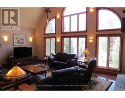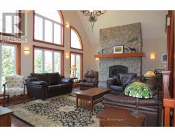 Experience the ultimate in waterfront luxury with this custom-built executive retreat, positioned on the shores of Eagle Lake. Boasting 136 feet of pristine sandy shoreline southwestern views, this property is nestled on a treed lot that ensures privacy. The interior is a masterclass in craftsmanship, featuring rich wood trim, rounded drywall corners, & premium European hardware. At the heart of the home lies a chef-inspired kitchen equipped with granite countertops, massive island with pendant lighting, & stainless-steel appliances. This space flows seamlessly into a sun-drenched dining area with a waterside deck, while a charming screened porch offers the perfect sanctuary to enjoy the outdoors in total comfort.The main level is anchored by a stunning living room where massive picture windows frame the lake and a floor-to-ceiling stone fireplace provides a warm ambiance. The primary suite serves as a private sanctuary, offering its own deck walkout, a spacious walk-in closet, and a spa-like 5-piece ensuite complete with a jet tub. Downstairs, the recreation room features a second stone fireplace and a walkout to the waterfront, providing a versatile space for hosting guests or relaxing after a day on the lake. Includes a 200-amp electrical system, programmable lighting, a security system, and a newer heating unit. Comfort is guaranteed year-round with central air and cozy in-floor heating throughout the basement, foyer, and all three bathrooms.The exterior features pre-stained wood siding and a unique metal roof designed with the elegant aesthetic of clay tiles. Accessible via a year-round township road, this location offers a rare blend of secluded peace a recreational convenience. Residents of Parsons Road also enjoy exclusive access to 165 acres of managed forest and scenic trails. Situated just minutes from Sir Sam's Ski & Bike Resort, local spa, licensed convenience store, gas station, and a public beach. Completely turn- key and ready for your arrival. (id:47351)