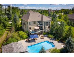 An extraordinary Brookville estate offering the ultimate in privacy, craftsmanship, and resort-style living on a rare 1.68-acre private court setting. This custom Charleston Homes masterpiece delivers over 7,000 sq. ft. of impeccably curated living space, where timeless architecture meets modern luxury.Inside, rich walnut hardwood floors, bespoke millwork, and expansive windows create an atmosphere of understated elegance and natural light. The designer Berzotti kitchen features premium built-in appliances, a statement island, and seamless flow to refined family and dining spaces, ideal for sophisticated entertaining. A built-in sound system enhances the great room experience.The primary suite is a serene retreat with a spa-inspired ensuite, heated floors, soaker tub, and walk-in closet. Five bedrooms and five bathrooms offer exceptional flexibility for family, guests, or multigenerational living. The fully finished lower level showcases a custom Rosehill wine room and expansive recreation area for elevated entertaining.Outdoors, discover a private resort with over $800,000 in professional landscaping, flagstone patios, hydro pool and hot tub, gunite water feature, and an elegant cabana with fireplace and bar, designed for year-round enjoyment. A 10+ car driveway and 3-car garage complete this remarkable offering. Minutes to Milton, Burlington, and Highway 401, this is a rare opportunity to own one of Brookville's most distinguished estates. (id:47351)