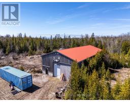 Set on a picturesque 16-acre parcel, this versatile property offers the perfect blend of residential comfort and functional workspace, with public access to the shores of Lake Huron directly across the road and over 1,200 acres of conservation land with ATV trails right at your back door for year-round recreation. Surrounded by nature, the area is known for an abundance of whitetail deer, adding to the property's appeal for outdoor enthusiasts and those seeking a peaceful rural lifestyle. A well-built gravel driveway constructed to road specifications leads to the impressive 40' x 80' (3,200 sq. ft./floor) two-storey building, featuring a spacious upper-level apartment of approximately 1,600 sq. ft. designed for comfortable four-season living, complete with two large bedrooms, a bright kitchen, open-concept living and dining area, 4-piece bathroom, and in-suite laundry. The exterior showcases timeless cedar board and batten siding with a durable red steel roof, complemented by a new 12' x 12' wood deck to take in the peaceful surroundings. The lower-level shop is equally well-equipped with a 10' x 12' insulated steel door, 2-piece bathroom, and robust 400-amp electrical service with a transfer switch for generator backup. A 24' x 54' greenhouse frame adds further potential, making this an exceptional opportunity for those seeking space, privacy, and endless possibilities for work and play. (id:47351)