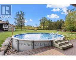This home was designed for entertaining warm, inviting, and ready for gatherings. Enjoy morning coffee on the front porch, host dinner parties on the back deck, or spend summer evenings around the firepit. The kitchen flows seamlessly to a partially covered & screened TREX deck with a solar-heated pool, hot tub, and plenty of outdoor living space. Inside, the main floor features multiple dining areas, a cozy living room with fireplace, a home office nook, foyer, and 2-pc bath. Upstairs, the primary suite includes a 3-pc ensuite, glass shower, and his & her closets, plus two additional bedrooms and a 5-pc bath. The lower level offers even more living space with a rec room, bar, wood fireplace, 4th bedroom, 4-pc bath, laundry, and storage. For the storage enthusiast, this property is a dream with ample parking for cars & RVs, a drive-thru attached double garage, plus a detached garage for all the extras. Your country escape awaits. (id:47351)