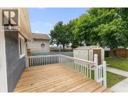A stylishly renovated 2-bedroom, 2-bathroom bungalow on a quiet street. This home blends modern finishes with comfort, showcasing 9ft ceilings, new flooring, and an oversized eat-in kitchen with quartz countertops and a large island. The primary suite features a beautifully remodelled ensuite paired with a spacious walk-in closet. This house has a main floor laundry unit while upstairs, a partially finished attic offers a generous bonus room-perfect for a third bedroom, home office, or playroom. Step outside to a private backyard with no rear neighbours, ideal for relaxing or entertaining. Exterior siding is asbestos. Close to restaurants, shopping, and all amenities. (id:47351)