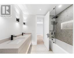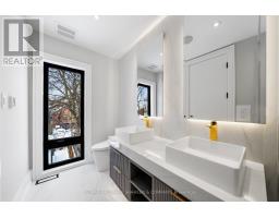 The experience begins on arrival with a heated driveway, followed by 12+ foot ceilings, skylights, and a raised, light-filled living space that set the tone for scale and warmth. The chef's kitchen is anchored by a large island wrapped in a fluted finish, a design motif echoed throughout the home in Vogt faucets, solid brass hardware, and refined architectural accents. Custom millwork is paired with a premium appliance suite including a Sub-Zero fridge/freezer, Wolf six-burner gas cooktop, wall oven, and Bosch dishwasher. The family room is elegant yet inviting, featuring fluted oak veneer panels, custom built-ins, and a porcelain fireplace, with floor-to-ceiling glass opening to a beautifully landscaped backyard. Enjoy a composite deck, interlocking surfaces, gas lines for a BBQ and firepit, gazebo, and full landscape illumination-ideal for quiet evenings at home. Upstairs, the primary suite offers a serene retreat with custom cabinetry, dual sinks, wall-mounted vanity, linear drain, floor bench, and a seamless full-slab stone shower. One additional bedroom includes its own ensuite, while two others share a bath. A convenient upper-level laundry completes the floor, with rough-ins in place for a future second laundry in the basement. The finished lower level features heated floors, a spacious rec room with walkout, wet bar, wine display, and flexible living space with direct access to the garage. Engineered for comfort and longevity, the home includes radiant in-floor heating for all stone surfaces, a high-efficiency furnace with heat pump cooling, tankless hot water, sump pump, integrated drainage system, an interlock driveway with snow-melt on stairs, and epoxy garage floors with LED lighting. Smart home features include Control4, an Ecobee thermostat, built-in speakers, a Wi-Fi booster, and security cameras. Set between Avenue Road and Yonge Street, within the coveted Allenby Junior PS and North Toronto CI catchments. (id:47351)