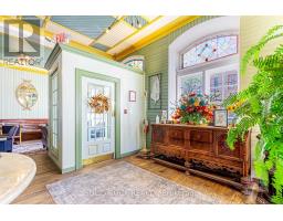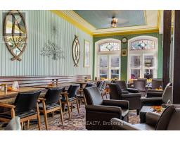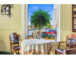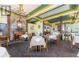 Merrickville is an affluent town due to being a waterfront community and bedroom to Ottawa. This Historic Baldachin Inn located on THE primary corner of Merrickville overlooking UNESCO Rideau Canal. The 200 seat ballroom shares its Kings Post Truss architecture with only one other building in North America. This venue is perfect for weddings or meetings and garners fabulous tourist traffic throughout the artisan village. This irreplaceable building features a restaurant, pub, lush courtyard, 2 retail stores, 2 residential suites and 11 guest rooms. There is good height attic that could be developed. This 1861 building has been well kept and maintained and includes modern features of an elevator and A/C. (id:47351)