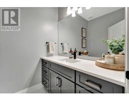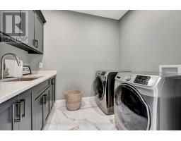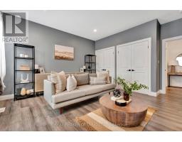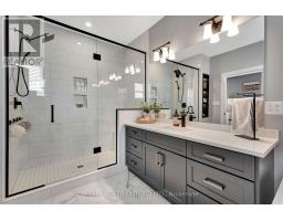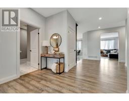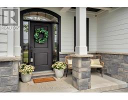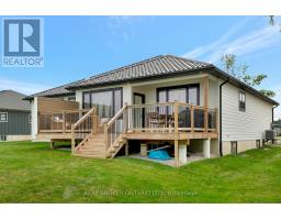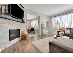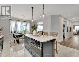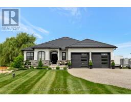 This stunning 2,141 sq. ft. bungalow is set on a picturesque lot and offers exceptional curb appeal with a double-car garage, elegant stone accents, metal roof, and sleek black trim. Beautiful landscaping and a wide concrete walkway welcome you into a thoughtfully designed home featuring soaring 9-foot ceilings and upscale finishes throughout. The gourmet kitchen is a showstopper, complete with rich dark cabinetry extending to the ceiling, striking high-contrast quartz countertops, upgraded fixtures, and tiled floors and backsplash. The oversized island is ideal for casual dining and entertaining, while the adjoining dinette offers a more formal dining space with walk-out access to the raised deck-perfect for indoor/outdoor living and enjoying scenic views. The living room invites you to unwind by the cozy stone corner gas fireplace. Additional main-floor conveniences include a stylish 2-piece powder room and a separate laundry room with custom cabinetry and quartz counters. The primary bedroom serves as a private retreat, featuring a luxurious 4-piece ensuite with a stunning glass shower and a relaxing soaker tub. Two additional bedrooms offer generous space for family, guests, or a home office, and are supported by a full 4-piece bathroom. The expansive double-car garage provides ample room for vehicles and storage, while the single-wide driveway expands to a triple-wide apron, offering abundant parking. The unfinished basement includes a finished staircase, bathroom rough-in, and deep windows-an excellent opportunity to create additional living space tailored to your needs. Ideally located close to schools, shopping, and everyday amenities, this exceptional home is also just 30 minutes from Amazon, Toyota, and Volkswagen's Battery Plant-making it a perfect blend of modern style, functionality, and convenient commuting. (id:47351)