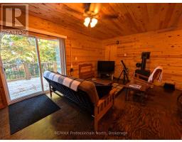 Nestled in the beautiful Almaguin Highlands on Spring Lake, located in the unorganized Township of Lount, this year round build has been completely renovated from top to bottom in 2021. The lake is spring fed, very clean, and approximately 70% crown land, with public access just down the road. The home/cottage is 2" x 6" construction, with 12" floors, new roof, insulation package, new electrical, plumbing, and full septic system for a 3 bedroom home. The home/cottage is complete with a dug well, and a cottage water supply system with UV, filters, and back-up heated line. Open concept living with living/dining area, 2 walkouts to large 11' x 32' deck, custom kitchen w/granite counter tops, 2 bedrooms, 4 pc bath, and foyer with stackable washer & dryer. For your guests there is a charming 12' x 16' Bunkie that would comfortably sleep 6. The property has a serene feel where you can sit back and relax on the deck overlooking the lake or on the dock taking in the sounds of the water and the calm of nature. Plenty of storage as well for your toys with the insulated 20' x 26' metal garage on concrete slab and 2 storage sheds. Added features include a large dock, boatlift, hard bottom shallow entry shoreline, and back-up generator with GenerLink hook up. This home/cottage is being sold "Turn Key", ready to go to start making lasting memories. (id:47351)