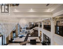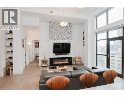 Welcome to this lovely lower penthouse at the iconic Royal Connaught, a beautifully preserved piece of Hamilton’s history right in the heart of downtown. This pristine, sun-filled unit offers soaring 13-foot ceilings, a bright open-concept layout, and southwest views. The modern kitchen is perfect for entertaining, featuring a waterfall quartz island, matching quartz countertops, and custom glass backsplash. The spacious living area includes a custom feature wall with electric fireplace. Enjoy added comfort and convenience with automated blinds throughout, a double vanity in the large 4-piece bath, a custom glass-enclosed tub/shower, in-suite laundry, and a walk-in closet in the primary bedroom. This unit also comes with an owned locker and an underground parking spot. Located just steps to everything you love about city living including trendy cafes, shops, art galleries, restaurants, and the vibrant energy of James Street. You'll also love the easy access to hospital services, transit, and GO Station connections. If you're ready for a blend of luxury, history, and urban convenience, this spectacular condo might just be your perfect match. (id:47351)