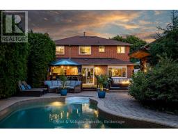 Welcome to an exceptionally rare find in Falgarwood, featuring an approximately 200-foot-deep lot that creates a truly private sanctuary. This stunning 4-bedroom home perfectly blends luxury with unbeatable convenience, offering a spectacular, resort-style backyard oasis complete with a custom in-ground pool, a new 6-person hot tub (2022), ambient lighting, a fully equipped Tiki lounge, and a fire-pit area-the ultimate setting for private relaxation or grand entertaining. Inside, enjoy freshly painted principal rooms, including a superb living/dining great room, alongside an oversized primary suite and three generous secondary bedrooms. Situated on a family-friendly street, you're just a short walk from Iroquois Ridge High School and all major amenities, with immediate access to every major highway, making this a unique and highly sought-after forever home. Follow Your Dream Home as Your Backyard Paradise Awaits. Don't Miss This One! (id:47351)