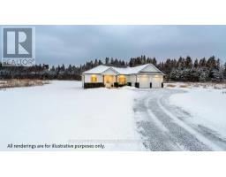 Welcome to this soon to be built 3 bedroom, 2 bathroom, double car garage, slab on grade in beautiful East Ferris. Situated on a large 6 acre country property in close proximity to Lake Nosbonsing public beach and boat launch, as well as 2 area schools, medical centre and only a short drive to town. The open concept living space offers a spacious living room, dining area with patio door to the backyard and a custom brownstone kitchen with island and bar seating. The primary bedroom is off to one side overlooking the back of the property and features a walk-in closet and 3pc ensuite. Two further bedrooms on the opposite side of the house are ideal for children or guest room and office. An additional 4pc bath, mudroom/laundry with garage access complete the main floor. The attached garage has a handy side door and access to the mechanical room featuring forced air propane heating with a/c, as well as in floor radiant heat throughout the home. Full Tarion warranty. Possession 6-7 months from commencement of construction. *3D rendering for visualization purposes only. Some material or finishes may vary upon completion (id:47351)