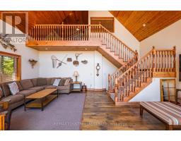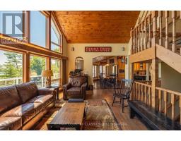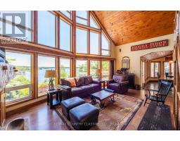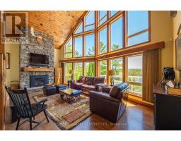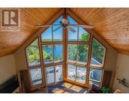 Experience refined waterfront living on beautiful Jack Lake in this exceptional five bedroom four and a half bath luxury home. Thoughtfully designed to capture elevated, panoramic lake views, this four season retreat blends upscale finishes with the relaxed elegance of cottage country. The main level features an open concept layout with soaring ceilings, expansive windows, and seamless flow to multiple outdoor entertaining areas. A gourmet kitchen with premium appliances and a large island anchors the space, ideal for hosting family and friends. The private primary suite offers stunning lake vistas, a spa-inspired ensuite, and walk-out access to a quiet balcony. Four additional bedrooms provide generous accommodations for guests, complemented by beautifully appointed bathrooms throughout. The lower level extends the living space with a bright recreation area, walk-out access, and plenty of room for gatherings, step outside to your own resort-style oasis. A heated inground swimming pool, integrated hot tub, and sun-drenched lounging terraces overlook the water, surrounded by mature trees and natural stone landscaping. A gentle path leads to the shoreline, offering clean swimming, excellent boating, and access to one of the Kawarthas' most desirable lakes. Designed for year-round comfort, this property includes modern utilities, ample parking, and storage for recreational gear. Whether as a full time residence or a luxury cottage escape, this home delivers an unmatched combination of privacy, craftsmanship, and breathtaking natural beauty on sought-after Jack Lake. (id:47351)