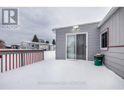 Opportunity Knocks! Welcome to this well-maintained 2-bedroom, 2-bathroom bungalow located in the heart of the highly sought-after Wilmot Creek Adult Lifestyle Community. Featuring a bright open-concept layout, the spacious living and dining areas are filled with natural light from large windows and offer a cozy gas fireplace-perfect for relaxing or entertaining. The eat-in kitchen boasts ample cabinetry, generous counter space, and additional seating for casual dining. A comfortable family room overlooks a 12'4" x 14'4" deck, where you can enjoy peaceful views of lush green foliage backing onto a ravine. The spacious primary bedroom includes a large walk-in closet and a 3-piece ensuite with a low-entry threshold shower. Additional highlights include ensuite laundry and double driveway parking for two vehicles. Ideally located just a short walk to the Wheelhouse, the vibrant hub of community activities and amenities. The monthly fee includes water, sewer, snow removal, and access to exceptional amenities, such as billiards, shuffleboard, fitness and dance classes, crafts (quilting, ceramics, scrapbooking, stained glass), tennis courts, pickleball, lawn bowling, and horseshoes. Enjoy an 800-seat auditorium for dances, theatre productions, and social events, a private 9-hole golf course, two saltwater pools, indoor hot tubs and sauna, a woodworking shop, scenic nature trails, and so much more. A wonderful opportunity to enjoy active, maintenance-free living in a welcoming community. (id:47351)