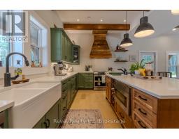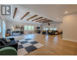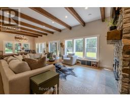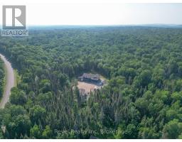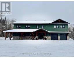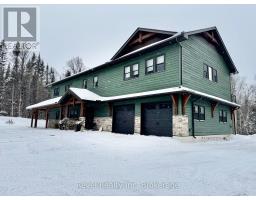 Welcome to this incredible Landry Homes designed, owner-custom built, 4025 sq. ft. slab on grade, 2-storey modern farmhouse situated on 104 acres of private forest and prime hunting, snowmobiling, and ATV-ing, for those looking to find enjoyment and solace in nature. Featuring 4 bedrooms, 2.5 bath, this house has ample room for the growing family. All rooms were carefully designed to be spacious with height and room for movement and entertaining. Walking into the main floor, you will notice the 10 ft. ceilings with log beams throughout as an accent, the spacious foyer with double closets offers plenty of storage. The floor plan is open, and the living room is complemented by this immense stone, wood-burning fireplace perfect for those winter nights. The kitchen is the "piece de resistance" with custom cabinetry, a large centre island, and quartz countertops.The in-floor radiant heat is included in the attached double garage, and the 24 x 40 ft detached shop with an upper mezzanine - perfect for the mechanic, or carpenter. The floors can be heated by the outdoor wood boiler, or with a turn of a switch to propane. The second storey of the home features an immense Great Room with vaulted ceilings and wood beams with sliding doors to an upper composite deck with a forest view with the glass railings. The Great room has many purposes: family room, pool area, office, kids play zone, and there were plans for a wet bar with surround sound speakers (all roughed in). The second level also features a laundry room, kids bathroom, 2 large storage closets, 2 large bedrooms with double closets each, and the back of the house is the primary suite with His and Hers walk-in-closets, and a 5-PC spa-like ensuite. The exterior has a large wrap-around covered porch (all concrete slab) and back patio with a path to the covered hot tub area. (id:47351)