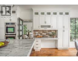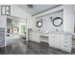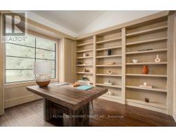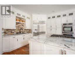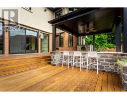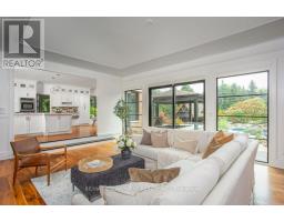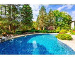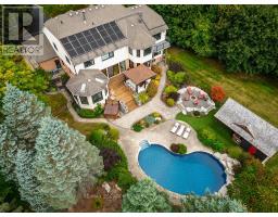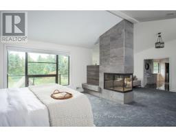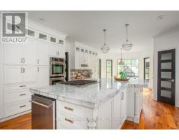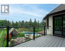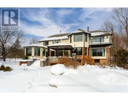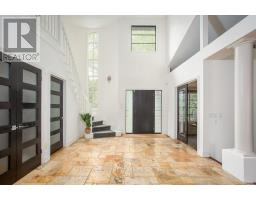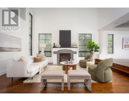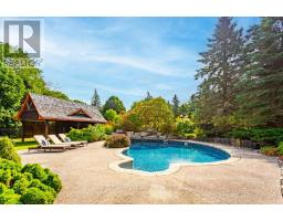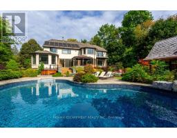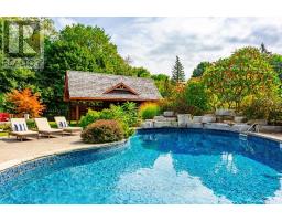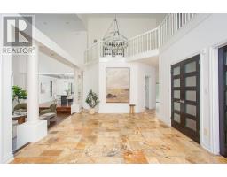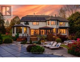 Set on a prestigious estate street, this exceptional residence offers comfort, connection, and quiet luxury in one of Carlisle's most welcoming and safe neighbourhoods-where evening walks, community spirit, and everyday ease define the lifestyle. A soaring 22-foot foyer opens to over 5,400 sq ft above grade, plus an expansive walkout lower level designed for living and gathering. The main floor balances architectural presence with warmth, featuring a sunken oak-panelled office, a grand living room with 19-foot vaulted ceilings, and a formal dining room overlooking the private backyard. The chef's kitchen boasts solid wood dovetailed cabinetry, marble countertops, professional appliances, walk-in pantry, and breakfast room, flowing into the family room with wood-burning fireplace, wet bar, and oversized sliders to the deck. A sun-filled sunroom, main-floor bedroom or office with ensuite, and full laundry add flexibility and ease. Upstairs, the primary retreat offers vaulted ceilings, seating area, two-sided fireplace, private balcony, and a spa-inspired ensuite with heated floors, marble counters, dual rain shower, water closet, and indoor sauna. Three additional bedrooms share a four-piece bath, while a second staircase leads to a private bonus room with ensuite-ideal for work or creativity. The walkout lower level features epoxy flooring, home theatre, fitness area, full bath, and ample storage. Outdoors, the south-facing backyard is a private retreat with heated saltwater pool, outdoor sauna, fire-pit, IPE deck, and stone kitchen with wood-fired pizza oven. With extensive updates, a heated four-car garage, and outstanding curb appeal, this is Carlisle living at its finest-more than a home, it's the setting for the life you've been waiting to live. (id:47351)